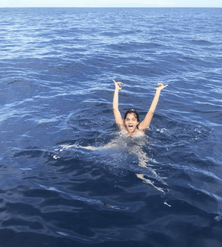 She is a diver, paraglider, amateur surfer, and skier who likes to jump off boats, cliffs and planes.